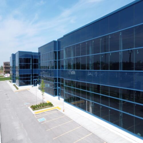 This stunning new commercial build is located at 204 Mapleview Drive West, Barrie, Ontario. Constructed in partnership with M-J-J-J Developments Inc. the total building size is 200,069 sq. ft. Raised with high performance curtainwall and Solarban 60 Solar Blue Insulated Units this structure turns heads on one of Barrie’s busiest streets.